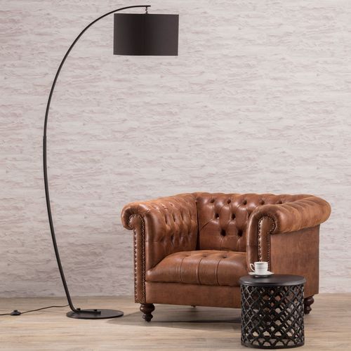 2. Nowoczesna lampa podłogowa Curve o minimalistycznym designie. Surowa forma to efekt połącznia metalowej, wygiętej w łuk podstawy oraz czarnego abażura.
