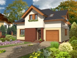 Opis:Projekt domu sorrento b to dom w zabudowie bliźniaczej, przeznaczony dla 4 osobowej rodziny. projekt charakteryzuje dwuspadowy dach, efektowny wykusz od strony ogrodu i taras nad garażem. Elewacje w jasnym kolorze kontrastuje z drewnem użytym jak okładzina garażu i wykuszu.