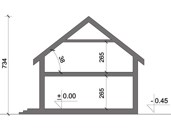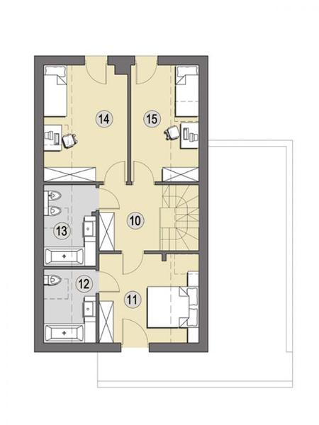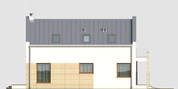 wejście do domu zaakcentowano podcieniem. Na parterze zaprojektowano praktyczne przejście z garażu przez pomieszczenie gospodarcze do przedsionka. Kuchnie otwartą na salon i jadalnię oddzielono praktycznym barkiem, wyznaczając w ten sposób strefę kuchni i salonu. Salon z kominkiem i dużymi oknami z widokiem na taras, to miejsce do wypoczynku dla całej rodziny. Na parterze zaprojektowano również gabinet i w.c. Zaraz przy strefie wejściowej. Poddasze domu to trzy sypialnie i dwie łazienki. Największa sypialnia została zaprojektowana z wyjściem na taras i osobną łazienką.