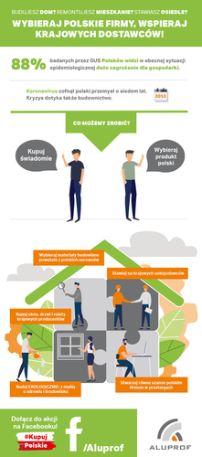 Na poparcie tych słów ALUPROF przygotował specjalną akcję o nazwie #KupujPolskie, która ma na celu rozpromowanie idei w Internecie. Wszyscy, którzy czują potrzebę wsparcia polskich firm, mogą wyrazić ją poprzez użycie specjalnej, biało-czerwonej nakładki na zdjęcie profilowe w serwisie Facebook. Wystarczy wejść na www.facebook.com/profilepicframes, wyszukać nakładkę #kupujpolskie i ustawić jako zdjęcie profilowe. Inicjator akcji zachęca także do dzielenia się infografiką opisującą świadome postawy konsumenckie i jej dalszego udostępniania.