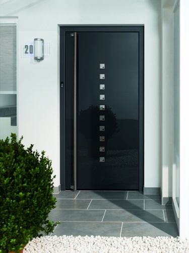 Aluminiowe drzwi Schüco ADS gwarantują domownikom pełny komfort obsługi, dzięki inteligentnym rozwiązaniom systemowym w postaci zdalnego sterowania czy bezkluczowego dostępu. Wmontowany nadajnik umożliwia otwieranie drzwi wejściowych zaledwie jednym przyciskiem pilota z pozycji pierwszego piętra, bez schodzenia na dół. Moduł video wraz z panelem obsługowym pozwala monitorować sytuację na zewnątrz i prowadzić rozmowę za pomocą domofonu. Biometryczny system dostępu z laserowym czytnikiem linii papilarnych Schüco Fingerprint umożliwia odblokowywanie drzwi jednym dotknięciem palca.