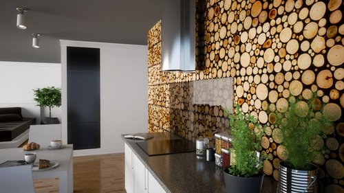 W poszukiwaniu kontaktu z naturą możemy pokusić się również o drewniane panele ścienne, które sprawdzą się zarówno w mieszkaniach utrzymanych w klimacie prowansalskim czy skandynawskim, jak również w nowoczesnych wnętrzach. Jeśli zależy nam na bezpretensjonalnej estetyce, zwróćmy uwagę na panele Pure z serii Wood Collection, wiernie odwzorowujące naturalne krążki drewna. Jeżeli w kuchni zdecydujemy się na tzw. wyspę i ozdobimy ją drewnianymi motywami, wówczas uzyskamy spójną aranżację z oryginalnym akcentem. Aby przedłużyć im życie, w newralgicznych miejscach, takich jak np. strefa gotowania, pamiętajmy o dodatkowym zabezpieczeniu powierzchni szybą.