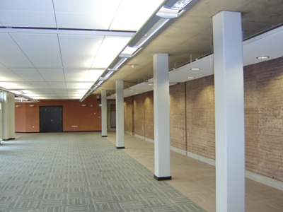 Wybrana metoda energooszczędności postawiła pod znakiem zapytania możliwość typowego wykończenia wnętrza biura. Nie pasowały tu klasyczne sufity podwieszane, ponieważ blokowałyby swobodny przepływ ciepła do i od stropu. Z drugiej strony nie można było udostępnić pracownikom sali o ponurym wyglądzie, w której każdy dźwięk będzie odbijał się głośnym echem. Rozwiązaniem okazały się płyty Armstrong Axiom Canopy. Zdecydowano się na instalację trzech oddzielnych, różnej wielkości i swobodnie zawieszonych na kilku wysokościach „chmurek”. Łącznie zajmują one 2/3 powierzchni sufitu. Ten wybór pozwolił na zachowanie odkrytego stropu i nieskrępowany obieg energii cieplnej. Axiom Canopy pochłaniają dźwięk z obu stron, co umożliwiło ukształtowanie właściwego klimatu akustycznego. Wysoki stopień odbicia światła pozwolił na dalsze oszczędności. I wreszcie – co również istotne - uzyskano ciekawą aranżację wnętrza.