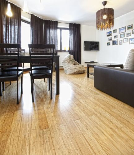 Jeśli bazą naszej aranżacji stała się jesionowa czy bambusowa podłoga, skontrastujmy ją z wyrazistym kolorem ścian i jasnym sufitem. Nie tylko podkreślimy poziome linie w kompozycji, ale wyróżnimy podłogę, która stanie się ciekawą, wyrazistą dominantą kompozycyjną.