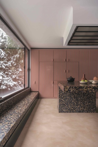 Neutralne barwy wciąż dominują w projektach, potwierdzając swoją ponadczasowość i uniwersalny charakter. W 2025 roku wnętrza zyskają jednak nowe oblicze dzięki tonacjom szlachetnych kamieni, które wprowadzą głębię i wyjątkowy nastrój. Bogate kolory inspirowane szmaragdem, szafirem czy rubinem podkreślą elegancję i luksus każdego pomieszczenia. Na uwagę zasługują również ciemne, ciepłe brązy, będące symbolem wyrafinowania i powrotu do natury. Intensywna kolorystyka doskonale współgra z neutralnymi podłogami w odcieniach jasnego piaskowca lub dębu. Nieco śmielszym połączeniem będzie chociażby zestawienie różowej zabudowy kuchennej z czarnymi blatami i panelami laminowanymi w odcieniu terrakoty z kolekcji Muse.