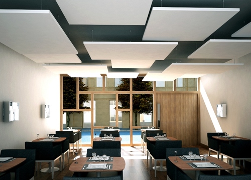 Pozbawione ram absorbery, o kształcie prostokąta lub kwadratu wytwarza się z płyt z wełny mineralnej o grubości 40 mm. Ich biała, gładka powierzchnia uzyskiwana jest dzięki pokryciu wierzchniej strony welonem z włókna szklanego. Zapewnia on dobre odbicie światła (współczynnik rozproszenia na poziomie 86%), a montaż na zawiesiach sprawia, że fale dźwiękowe padają na wyspę z obu stron, co dodatkowo zwiększa poziom dzwiękochłonności. Montaż pojedynczych wysp ułatwia również cyrkulację powietrza, dzięki czemu można je stosować w obiektach wykorzystujących masę termiczną.
