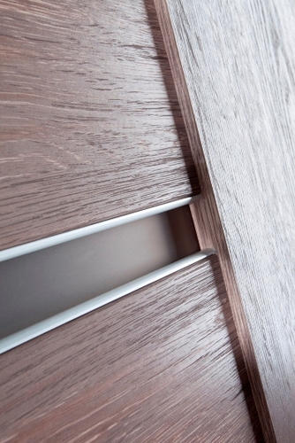 Naturalny rysunek słojów jesionu na okleinie drzwi z kolekcji Sempre Alu
