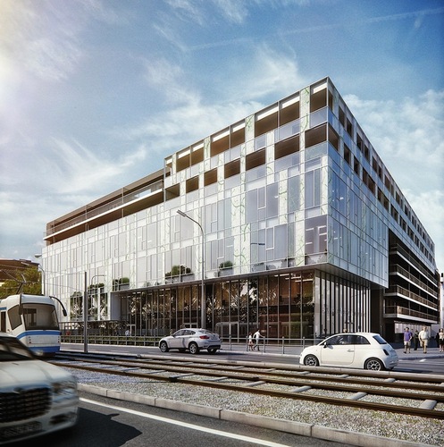 Z kolei kondygnacje biurowe są oddzielnie skomunikowane systemem wind z reprezentacyjnym wejściowym hollem recepcyjnym i wykończone „pod klucz” w klasie A. Wyodrębniono również miejsce na zamknięty wewnętrzny dziedziniec z placem zabaw dla dzieci. Natomiast w podziemiach budynku powstanie garaż na 61 miejsc postojowych.
