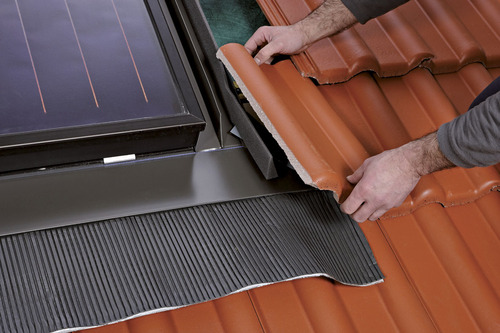 Montaż nad dachówką pozwala na zainstalowanie kolektorów równolegle do połaci dachu. Istnieje tu możliwość zmiany kąta dla kolektorów względem spadku dachu. Istnieje wiele ciekawych rozwiązań dla tego typu instalacji. Przeglądając różnorodne oferty, do każdego typu dachówki, można znaleźć specjalnie zaprojektowane dachówki, dopasowane kolorem i wzorem do systemu. W ofercie różnych firm są także specjalne rozwiązania pozwalające zainstalować kolektory w innym kącie niż spadek dachu (w przypadku zbyt płaskiego dachu, można zainstalować specjalne elementy pozwalające na montaż kolektorów pod dodatkowym kątem 15 st.). Cały dach zrealizowany może być za pomocą jednego systemu, dzięki czemu każdy klient ma gwarancję najwyższej jakości. Montaż zintegrowany „w dachu” pozwala z kolei całkowicie zintegrować kolektory z płaszczyzną dachu. Kolektory montuje się bezpośrednio na łatach w linii dachówek.