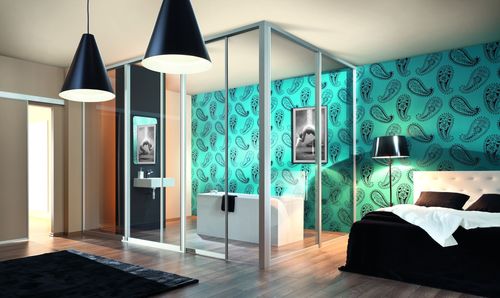 System Aurora doskonale sprawdzi się także przy tworzeniu garderoby lub miejsca do spania. Jeśli pokój ma zapewnić większą prywatność, można zastosować ściany z półprzezroczystego szkła lub zamontować żaluzje do zasłonięcia szyb. System Aurora zapewnia możliwość instalacji przewodów elektrycznych oraz gniazdek i przełączników. Jeśli więc urządzamy małe biuro czy miejsce do nauki, nie będziemy mieli problemów z podłączeniem oświetlenia i sprzętu komputerowego. Ponadto, podświetlone szklane ściany wyglądają niezwykle efektownie.