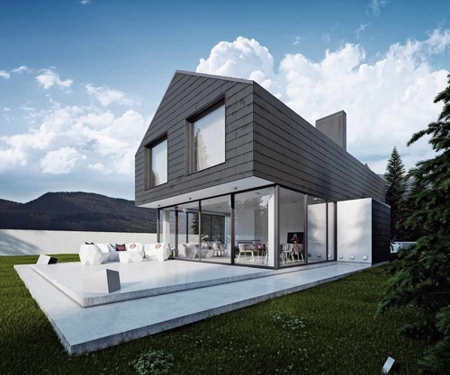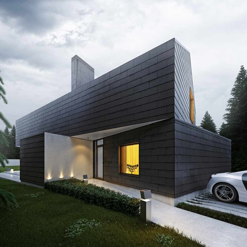 Zaproponowany przez pracownię projekt domu jednorodzinnego w Międzylesiu pozwala zupełnie inaczej spojrzeć na klasyczny dom. Mimo że punktem wyjścia dla warszawskich architektów było archetypiczne, czyli pierwotne wyobrażenie budynku jako domu, udało im się stworzyć projekt zaskakujący ciekawymi rozwiązaniami. Przede wszystkim uwagę zwraca elewacja budynku jak pokrycie dachowe. Bryła w całości została obłożona tym samym materiałem. - Podkreśliliśmy w ten sposób formę budynku i na niej się skupiliśmy – wyjaśnia architekt Anna Paszkowska z pracowni 81.WAW.PL. - Takie rozwiązanie pozwala patrzeć na budynek jako jedną całość, pomimo znajdujących się tu i ówdzie załamań – dodaje.