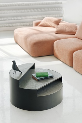 Mocny wyraz artystyczny o bardzo zmiennej naturze ma jednak i sam stolik. Jego obudowa powstaje z malowanej proszkowo stali, natomiast blat – z kamienia, drewna, płyty fornirowanej lub lastryka. W każdym wariancie oferuje tę samą najwyższą jakość materiału oraz ręcznej, rzemieślniczej obróbki. Pozwala jednak wprowadzić do wnętrza niezwykle zróżnicowane efekty wizualne.
