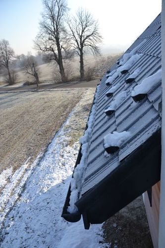 Zalegający w rynnach śnieg, ze względu na swój ciężar i zwiększoną objętość, może prowadzić do poważnych uszkodzeń systemu rynnowego, takich jak pęknięcia czy oberwania. Jednak gdy zauważymy, że rynny nie są drożne, w ich wnętrzu powstał jeden wielki korek, a prognozy pogody wcale nie zapowiadają ocieplenia aury, poczekajmy z pracami udrożniającymi przynajmniej do momentu, gdy przestanie padać śnieg. Próby siłowego pozbycia się zatorów mogą zakończyć się jeszcze poważniejszymi zniszczeniami takimi jak: rozszczelnienia, uszkodzenia powłoki czy duże pęknięcia, których nie da się naprawić. Usunąć powinniśmy jedynie zwisające sople lodu, które są bardzo niebezpieczne i mogą stanowić zagrożenie dla mieszkańców i ich zwierzaków.