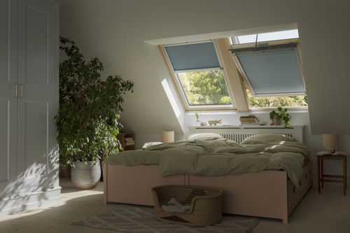 Nowe elektryczne i solarne rolety wewnętrzne VELUX mają o 25% węższą dolną listwę, w porównaniu do przesłon z poprzednich kolekcji, dzięki czemu wyglądają bardzo elegancko i dyskretnie na oknie. Po podniesieniu nie ograniczają widoku ani dostępu do światła dziennego. Cichy silnik zapewnia wysoki komfort użytkowania i płynną pracę. Dodatkowo rolety zaciemniające z nowej linii jeszcze skuteczniej blokują światło, będą więc idealnym wyborem do sypialni lub pokoju dziecka, gdzie szczególnie zależy nam na ochronie przed promieniami słońca.