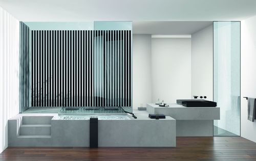 „Aranżacje Deque kształtują wodę, traktując ją jak powierzchnię architektoniczną”, mówi Mike Meiré. „Funkcjonują jako rodzaj ramy prezentującej wodę. Czyste, zredukowane. W ten sposób okazujemy wodzie szacunek.”