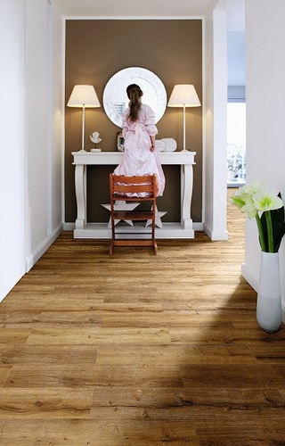 Wielbiciele tradycyjnego wzornictwa odnajdą się w stylu klasycznym, który opiera się często na eleganckich, drewnianych meblach, nierzadko bogato zdobionych rzeźbionymi detalami. W takim wnętrzu rządzi porządek i symetria. Ważne miejsce zajmuje tu również szkło – zarówno ozdobne kryształy, przeszklenia w szafach, jak również znacznych rozmiarów lustra. Przy urządzaniu wnętrza w stylu klasycznym niezwykle ważną rolę odgrywa wybór odpowiedniej podłogi. Najlepiej, jeśli nawiązuje ona stylistycznie do mebli – stawiamy więc na drewniane dekory o wyrazistych słojach, w ciepłych i naturalnych kolorach, jak np. panele laminowane z kolekcji Marena V2 o dębowych wzorach i dwustronnej v-fudze, które doskonale naśladują prawdziwe deski. W ciemnej, klasycznej kolorystyce idealnie sprawdzi się propozycja marki Wineo w kolorze Dąb Zamkowy, a w jaśniejszej – Dąb Szampański lub Dąb Tyrolski Creme.