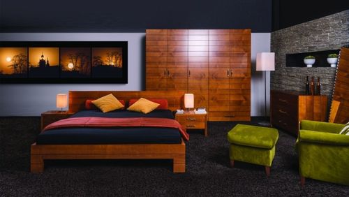 i wygodnego. Przestronne łóżko będące centrum sypialni mogą dopełniać stoliki nocne, komoda i przestronna szafa. Ich klasyczna forma połączona z naturalnym pięknem i ciepłem barw materiału, to przykład osiągnięcia niezwykle trudnego efektu – współistnienia ponadczasowości
