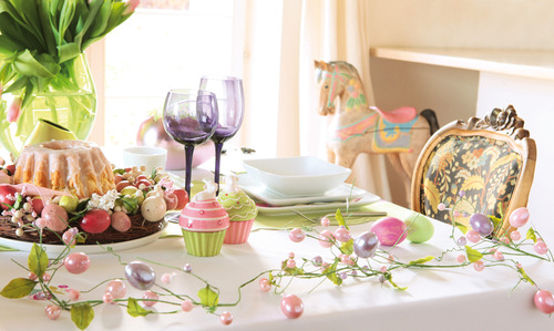 "Nie wszyscy stawiają na klasykę i naturalność w aranżacji. Osobom odważnym, które gustują w oryginalnych dodatkach spodobają się tegoroczne propozycje projektantów, którzy stawiają na fiolet, róż i złoto. Kolorowe świece w kształcie zająca, zabawne figurki w postaci kurczaków czy pojemniczki na drobiazgi w kształcie jajek wniosą do wystroju radość i pozytywne myślenie" – dodaje stylista home&you. Nowoczesną aranżację zaakcentuje serweta lub bieżnik z wesołym wzorem, barwne podkładki oraz wiosenny wianek z serii Easter Rainbow. Dodatkowym akcentem będą różnego rodzaju zawieszki w kolorach tęczy.