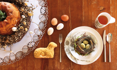 Połączenie zieleni z bielą to proste, a jednocześnie niezwykle efektowne rozwiązanie. Świeży kolor trawy i łagodna, czysta biel kolekcji Morning Dewdrops wniosą do domu powiew radosnej wiosny. Wielkanocny wianek, ozdobiony młodymi listkami i pisankami idealnie zaprezentuje się na śnieżnobiałym obrusie ze świątecznym motywem: - "Na komodach ustawmy wazony pełne świeżych tulipanów i oryginalnych gałązek z błyszczącymi kamykami lub doniczki z żonkilami" – radzi ekspert home&you. Całość dopełnią elementy dekoracyjne, takie jak zawieszki, świece i figurki w kształcie zajączka. Podkreśleniu sympatycznego nastroju pomogą również wesołe magnesy-ptaszki na lodówkę oraz klamerki na firankę.