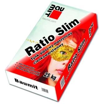 Tynk Baumit Ratio Slim jest fabrycznie przygotowaną mieszanką tynkarską na bazie gipsu z dodatkiem wapna i lekkich wypełniaczy. Jest on przeznaczony do nakładania maszynowego i ręcznego wewnątrz pomieszczeń. Cienkowarstwowy tynk gipsowy firmy Baumit o wysokiej przyczepności można nakładać na równe podłoża takie jak beton, gazobeton, pustak silikatowy oraz ceramiczny.