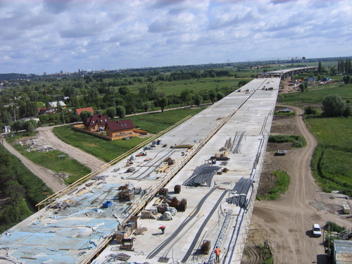 Z chwilą zakończenia prac na Estakadzie E-1 stanie się ona najdłuższą estakadą w Polsce, o długości całkowitej wynoszącej 2750m. Projekt technologiczny zakłada cztery stanowiska, z których odbywa się nasuwanie. Wysuwane są segmenty o długości 22,5m oraz 54m. Cykl wykonania krótszego segmentu wynosi 6-7 dni, natomiast dłuższego 9-10 dni. Wykonawca powoli przygotowuje się do prac wykończeniowych obiektu. Dotychczasowy progres prac można szacuje się nawet na 70%.