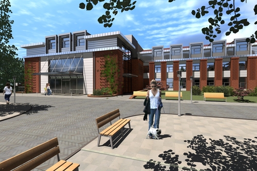 Na parterze budynku znajduje się także wewnętrzny dziedziniec - atrium, który dzięki zastosowaniu przeszklonego dachu stanowi dużą, doskonale doświetloną przestrzeń do organizacji sympozjów naukowych czy innych wydarzeń, a na co dzień będzie miejscem spotkań pacjentów i zabaw dzieci.