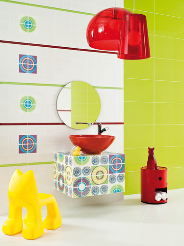 Jeśli planujesz wykończenie łazienki czy kuchni dla małego dziecka lub nastolatka doskonale sprawdzą się płytki utrzymane w nowoczesnej, młodzieżowej stylistyce. Białe, delikatnie strukturalne płytki bazowe z perłowym połyskiem – już brzmi zachęcająco. W połączeniu z dekoracjami dostępnymi w dwóch zestawach z motywem strukturalnych kół: kontrastowe czarno-białe lub wyjątkowo radosne w wielu intensywnych kolorach oraz ze szklanymi listwami, dają szeroką gamę zastosowań. Pomogą rozjasnić każde wnętrze i zagwarantować uśmiech na twarzy dziecka, jak i osoby dorosłej. Wariacji może być wiele, ograniczeniem jest jedynie nasza wyobraźnia.