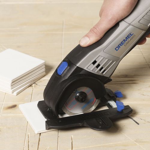 Piła ręczna Dremel DSM20 z prowadnicą krawędziową DSM i diamentową tarczą do cięcia płytek Dremel DSM540