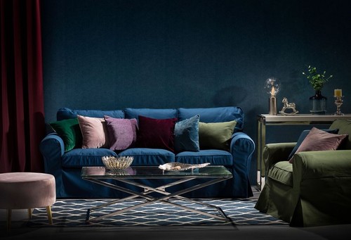 Łącząc wyrazisty niebieski z kontrastującymi, czyli tzw. dopełniającymi barwami, takimi jak czerwień, żółć czy zieleń, uzyskasz niepowtarzalny efekt dekoracyjny, na miarę domowej galerii sztuki.