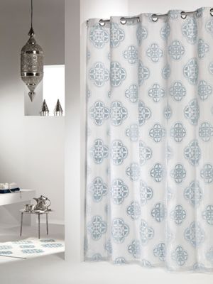 Zasłona Monastir jest doskonałą propozycją do wnętrz stylizowanych. Dekoracja, której estetycznego źródła można dopatrywać się m.in. w orientalnych ściennych kaflach, wprowadza do wnętrza spokój i równowagę. Sprzyja temu także wyważony kolor całości. Zasłona Monastir wykonana została z poliestru połączonego z organzą. Zasłona o wymiarach 180x200 cm. Do kompletu można dokupić dywanik łazienkowy o wymiarach 60x90 cm.