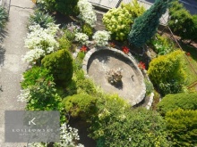 Dach pokrywa papą. Teren wokół nieruchomości został utwardzony, pokryty nawierzchnia betonową, znajdują się na nim liczne drzewa oraz krzewy. Na posesji znajduje się również mała fontanna nadająca uroku całej nieruchomości. Działkę ogrodzono metalowym płotem.