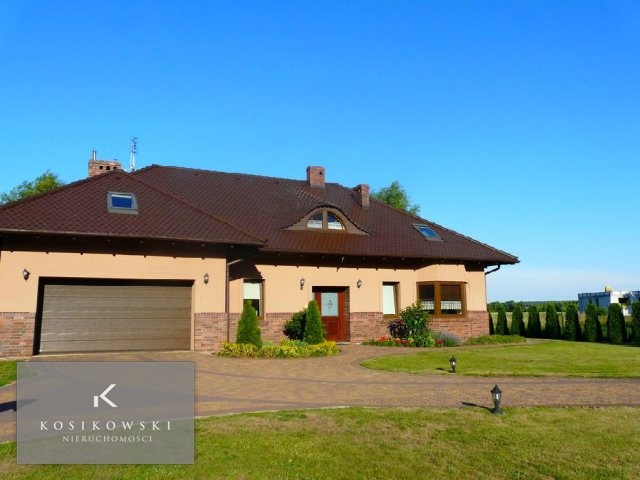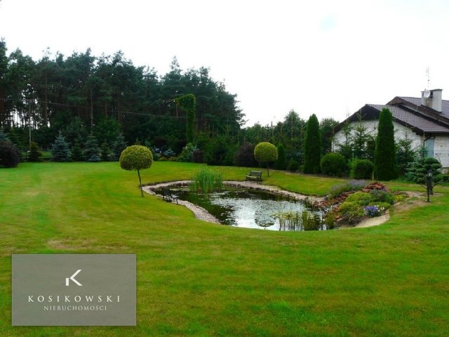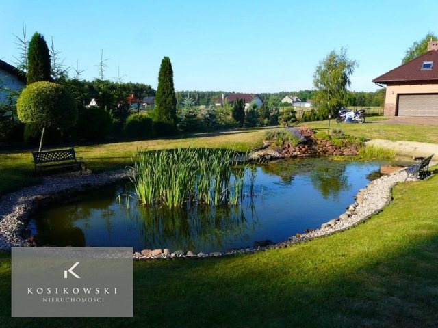 Dom posadowiony na dużej, zagospodarowanej 25 arowej działce na której znajduje się wiele nasadzeń i krzewów ozdobnych oraz oczko wodne z oryginalnym wodospadem.