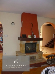 Dom zbudowany z najwyższej klasy materiałów ściany pustak ceramiczny, wełna mineralna, cegła klinkierowa, dach pokryty dachówką ceramiczną "karpiówką". Przestronny salon (32m2) z jadalnią i wyjściem na taras. Na podłodze parkiet sosnowy, ściany gładź, w centralnej części tego pomieszczenia znajduje się kominek.
