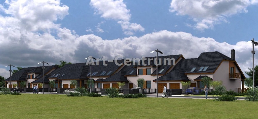 Okazja cenowa!! Przepięknie położone osiedle domów wolnostojących i w zabudowie szeregowej. Osiedle położone pośród lasów, blisko rzeki Brdy. Dogodny dojazd do Bydgoszczy i Koronowa. Wymarzona lokalizacji dla poszukujących spokoju połączonego z nowoczesną architekturą zabudowy. Osiedle ogrodzone z działkami wpełni uzbrojonymi (wraz z kanalizacją miejską). Możliwość zakupu domu w zabudowie szeregowej według niniejszej oferty lub zlecenia wybudowania domu wolnostojącego według wybranego projektu. Prezentowany dom w zabudowie szeregowej, wyceniony został dla stanu surowego zamkniętego. Ocieplony styropianem 120mm, otynkowany, drzwi zewnętrzne antywłamaniowe ocieplone, brama garażowa ocieplona z napędem i zdalnym sterowaniem. Wszystkie media na działce - prąd, woda, gaz, kanalizacja. Kupujący nie płaci podatku od czynności cywilno-prawnych. Prowizję pokrywa deweloper (klient nie płaci prowizji dla biura pośrednictwa!). Domy o powierzchniach 154m2, 156m2 lub 174m2 na działkach od 267m2, 369m2 lub 416m2. W szeregu jest ustawionych 10 domów. W domu środkowym: wejście przez wiatrołap (3,92m2) lub z garażu (15,04m2) prowadzi do holu (6,59m2). Na parterze mamy do dyspozycji pokój (12,12m2), łazienkę (6,6m2) oraz przestronny salon (37,16m2) z aneksem kuchennym (lub kuchnią oddzielną do wyboru). Na poddasze prowadzi klatka schodowa (7,35m2). Położony na piętrze hol (4,07m2) prowadzi nas do trzech pokoi (25,69m2 z wyjściem na balkon/19,93m2/9,66m2) i łazienki (6,74m2). Na poddaszu okna połaciowe typu "Velux" 78x118. Całkowita Pu=154m2. Bardzo dobra oferta! Kupujący nie płaci prowizji!! Wynagrodzenie dla biura pokrywa deweloper. Zapraszam! Adam Nowak 667 447 955