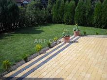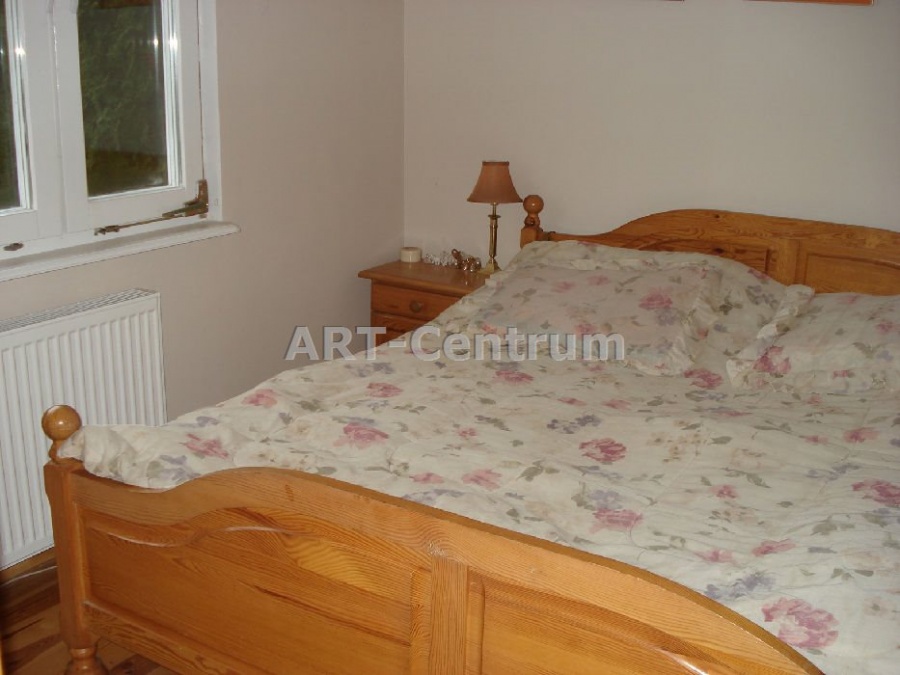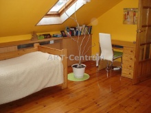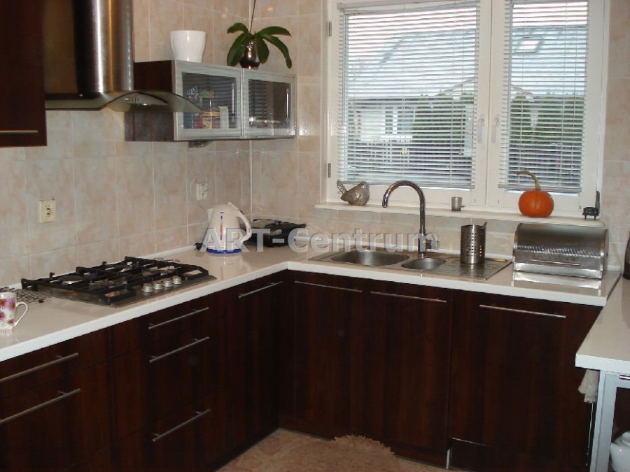 .Dom na osiedlu ogrodzonym i monitorowanym w technologi szkieletowej drewnianej w zabudowie szeregowej.Wykończony i oddany w użytkowanie w 2005r. Na parterze 100m2 jest salon o pow 33m2, sypialnia 11m2,pokój 12m2, kuchnia 20m2, łazienka z toaletą 6m2, korytarz, pralnia 9m2, spiżarka 4m2, i garaż jednostanowiskowy. Na piętrze korytarzyk z przejściem do dużego 22m2 pokoju,łazienka z toaletą i strych.Działka w części wyłożona polbrukiem z licznymi nasadzeniami drzew iglastych. Taras 25m2. W kuchni nowa zabudowa i nowy sprzęt AGD. Na podłodze w kuchni i w korytarzu ogrzewanie podłogowe. W pokojach ładnie polakierowanie deski sosnowe. Na ścianach gładzie. Ogrzewanie gazowe ( piec dwufunkcyjny)