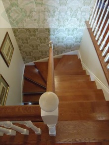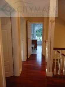 Podłoga drewniana - parkiet egzotyczny. Hol, kuchnia i 2 łazienki - gres.
