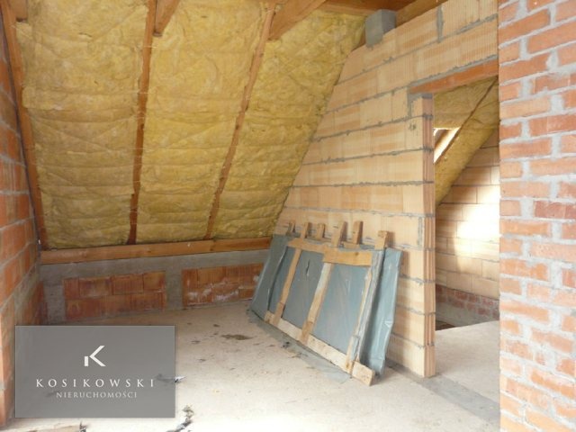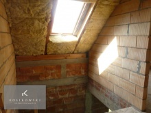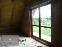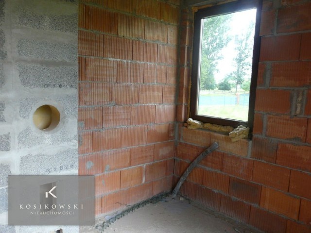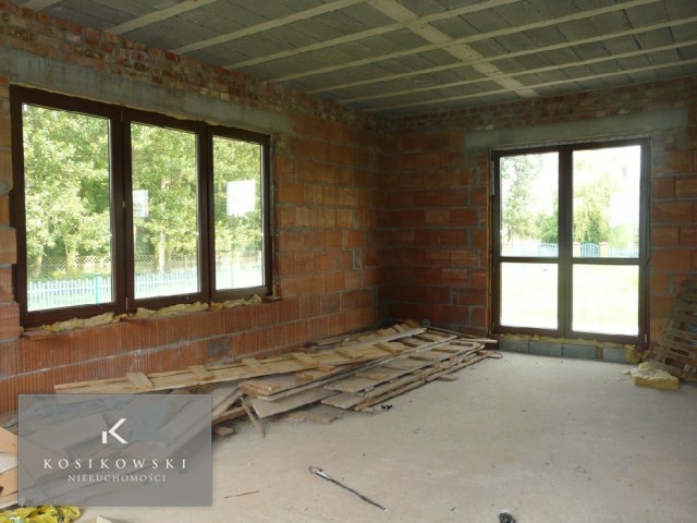 Jednopoziomowy dom zlokalizowany jest w jednej z miejscowości gminie Domaszowice. Budowa domu została rozpoczęta w 2009 r. Na chwilę obecną dom jest w stanie surowym zamkniętym. Zamontowano nowe, duże okna PCV z okleiną drewnopodobną oraz z roletami zewnętrznymi. Budynek mieszkalny jest parterowy z użytkowym poddaszem, niepodpiwniczony. Bryła budynku na rzucie prostokątnym pokryta dachem dwuspadowym o kącie nachylenia 40 stopni. Całość budynku urozmaicają balkony i podcień wejścia. Ściany zewnętrzne postawione z bloczków Ytong 36.5 cm, natomiast ściany wewnętrzne konstrukcyjne z bloczków Ytong 24 cm, a ściany działowe z bloczków o grubości 12 cm. Strop prefabrykowany TERNA I. Metraż poszczególnych pomieszczeń: 3 pokoje o powierzchniach ok. 13, 11 i 9 m2 mogą w przyszłości funkcjonować jako sypialnie, przestronna i funkcjonalna kuchnia - ok. 9 m2, duży salon połączony z jadalnią o łącznej powierzchni ok. 30 m2, łazienka - ok. 4 m2, toaleta - ok. 1,5 m2, kotłownia - ok. 6 m2, hol - ok. 6,5 m2, przedpokój - ok. 6 m2 oraz wiatrołap o powierzchni ok. 6 m2. Budynek mieszkalny posadowiony jest na 13 arowej działce, która została w całości ogrodzona siatką ogrodzeniową. Dojazd do domu drogą asfaltową. Lokalizacja nieruchomości to jedna z miejscowości w gminie Domaszowice. W miejscowości znajdują się przystanki PKS i PKP, a także sklepy ogólnospożywcze, plac zabaw, kościół. Wszystkie te elementy sprawiają, że nieruchomość staje się atrakcyjną ofertą dla osób ceniących sobie ciszę, spokój.