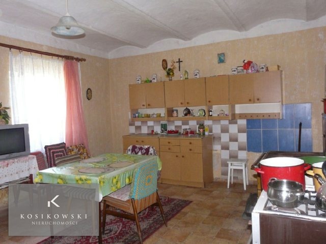Na parterze usytuowana jest przestronna kuchnia (ok.25m2) w której znajdują się meble kuchenne, stół, krzesła, kuchenka gazowa, niezwykle przydatny piec kaflowy, telewizor. Powierzchnia tego pomieszczenia pozwala na innowacyjne rozwiązania i pozostawia nowym właścicielom możliwość zagospodarowania tej powierzchni według własnego gustu i uznania.