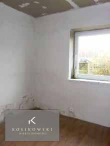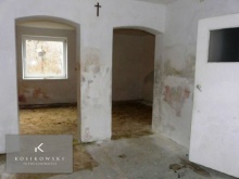 Dwa kolejne pokoje o powierzchniach ok. 12 oraz 22 m2 stanowią otwartą przestrzeń. Ściany w obu pomieszczeniach pokryto gładzią tynkarską, natomiast na podłodze w jednym z nich znajduje się wylewka betonowa, w drugim klepisko.