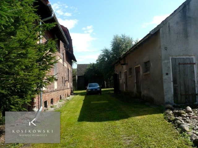 Na pierwsze piętro nieruchomości prowadzą wykafelkowane schody. Na tej kondygnacji znajdują się dodatkowo dwa pokoje, które można w dowolny sposób zaadaptować. Mieszą się w nich drewniane okna oraz drewniana podłoga. Na nieruchomości widnieje dwuspadzisty dach pokryty dachówką. Na terenie działki znajduje się murowana stodoła o powierzchni ok. 144 m2, która obecnie stanowi funkcję magazynu. Kolejnymi budynkami, które uatrakcyjnią nieruchomość są: drewniana stodoła o powierzchni ok. 42 m2, która może pełnić funkcję garażu oraz murowane pomieszczenia gospodarcze o powierzchni ok. 66 m2. Całość zabudowań, czyli połowa domu mieszkalnego oraz zabudowa gospodarcza posadowione są na działce siedliskowej składającej się z dużego i zadbanego podwórza, ogrodu, na którym rosną drzewa owocowe, łąki oraz gruntu ornego, który na dzień dzisiejszy jest uprawiany. Łączna powierzchnia gruntów wynosi 1,94 ha.