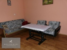 Pokój (ok. 16m2) ściany tynk tradycyjny, okna skierowane na południowy - zachód co daje bardzo duże nasłonecznienie w ciągu całego dnia. Wyposażenie tego pomieszczenia to: meble pokojowe, łóżko, sofa, ława.