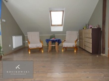 We wszystkich pomieszczeniach zamontowane są nowe okna drewniane (MERANTI) , nowe drewniane drzwi w kolorze brązowym, a także panele wysokiej klasy ścieralności.