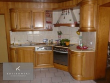 W bryle budynku znajdują się cztery pokoje. Trzy z nich mogą funkcjonować jako sypialnie, natomiast ostatni pokój na chwilę obecną stanowi salon. Części mieszkalnej występują również dwa pomieszczenia kuchenne, które zostały wyposażone w meble oraz sprzęty RTV, np. płytę indukcyjną, piekarnik, okap, zmywarkę, zlewozmywak wraz z baterią. Kolejnym pomieszczeniem jest łazienka, która została w całości wykafelkowana. Zamontowano w niej wannę, umywalkę i toaletę. Do pomieszczeń prowadzi przedpokój, który został w całości pokryty boazerią. Dach na budynku- dwuspadzisty. Do budynku mieszkalnego zostały doprowadzone niezbędne media. Ogrzewanie nieruchomości z przydomowej kotłowni, w której znajduje się piec węglowy.