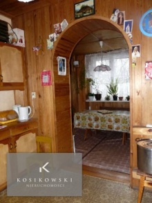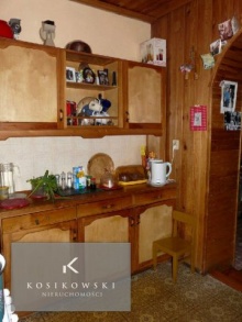 c) kuchnia o powierzchni ok. 10 m2, w której znajdują się jasne meble kuchenne, zlewozmywak, okap. Ściany pokryto kaflami w jasnych, pastelowych kolorach oraz częściowo boazerią. Podłogę wykonano z drewna. Pomieszczenie połączono z jadalnią - ok. 6 m2, w której znajduje się stół oraz narożnik. W obu wnętrzach na podłodze znajduje się wykładzina PCV.