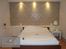 Sypialnia (ok. 18m2 ) ściany gładź, podłoga panele, oświetlenie halogenowe. Trzeci pokój (ok.25m2 ) jasny, możliwość podziału na dwa mniejsze.