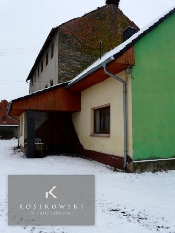 Budynek mieszkalny o powierzchni 130m2, jednokondygnacyjny, jest częściowo podpiwniczony, z poddaszem użytkowym. Wewnątrz zaczęto remont niektórych pomieszczeń, wymieniono na nowe okna PCV, a także więźbę dachową z dachówką ceramiczną. Parter składa się z przedsionka, przedpokoju, dwóch pokoi, kuchni, łazienki z pomieszczeniem gospodarczym. Wykończenie pomieszczeń zróżnicowane: podłogi w pokojach i przedpokoju drewniane, w kuchni i łazience – kafle, w pokojach wykładziny i dywany. Ściany w pokojach malowane, w łazience glazura, w przedpokoju i kuchni boazeria. Na piętro, które składa się z pokoju i przedpokoju prowadzą drewniane schody. Istnieje dodatkowa możliwość adaptacji dwóch pokoi z budynku magazynu zboża.