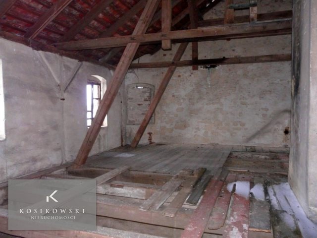 Budynek obory ma powierzchnię 250m2, posiada murowane konstrukcje. Schody z parteru na poddasze są masywne i drewniane. Budynek jest orynnowany, posiada wewnętrzne drzwi drewniane oraz stalowe okna.