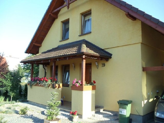Do sprzedaży nowy, piętrowy dom wolnostojący o powierzchni 130 m2 usytuowany na 9 arowej działce w Namysłowie przy ulicy Pastewnej. Nieruchomość składa się z 3 jasnych pokoi, przestronnego salonu, poręcznej kuchni oraz 2- ch gustownych łazienek. Na parterze znajduje się w pełni umeblowana kuchnia, duży salon połączony z jadalnią o łącznej powierzchni ok. 60 m2., z którego wychodzi się na zagospodarowany ogród, garderoba z dwiema zamontowanymi szafami, pomieszczenie gospodarcze gdzie umieszczony jest piec gazowy oraz WC. Na piętro prowadzą drewniane schody. Na tym poziome znajdują się 3 pokoje. Dwa większe o powierzchni ok. 14 m2 z zamontowanymi szafami wnękowymi, natomiast mniejszy o powierzchni ok. 12 m2. Na piętrze mieści się gustowna łazienka z zamontowaną kabiną prysznicową, wanną, WC i umywalką. Ponadto nad 1 piętrem znajduję się przestronne poddasze pełniące funkcję magazynku, przechowalni rzeczy, których w każdym domu jest sporo. Wykończenie wnętrz zróżnicowane: na podłogach jasna terakota oraz panele, ściany z płyt kartonowo- gipsowych pokrytych gładzią. Stolarka okienna- PCV z okleiną złoty dąb. Stolarka drzwiowa wewnętrzna- drewniana. Budynek wykonany z najwyższej klasy materiałów budowlanych. Ściany wykonane z pustaka ceramicznego „POROTHERM” ocieplone styropianem o grubości 10 cm. Dach pokryty dachówką „BRAAS”. W bryle budynku znajduje się wiata garażowa. Do nieruchomości została doprowadzona instalacja wodna, kanalizacyjna oraz energetyczna. Na posesji znajduje się zbiornik na gromadzenie wód deszczowych., do którego można podłączyć odprowadzenie wody opadowej. Ogrzewanie domu odbywa się za pomocą pieca gazowego poprzez ogrzewanie podłogowe i grzejnikowe oraz dodatkowo kominkiem z rozprowadzeniem po poszczególnych pomieszczeniach. Dom posiada system telewizji kablowej oraz sieć internetową. Nieruchomość w całości ogrodzona: od frontu elementy drewniane z słupkami klinkierowymi, a od ogrodu- siatka ogrodzeniowa. Podwórze wyłożone kostką granitową, co nadaje estetyczny wygląd. Oferujemy skuteczną, nieodpłatną pomoc w uzyskaniu kredytu na zakup nieruchomości. Zapraszamy do naszego biura w celu omówienia szczegółów oferty oraz ustalenia dogodnego dla Państwa terminu prezentacji. Nota prawna: Informacje dotyczące opisu nieruchomości podane są przez właściciela, mają charakter wyłącznie informacyjny i mogą podlegać aktualizacji. Oferta dotycząca nieruchomości stanowi zaproszenie do rokowań zgodnie z art. 71 Kodeksu Cywilnego i nie stanowi oferty określonej w art. 66 i następnych KC.