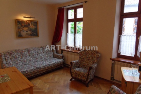 DO SPRZEDANIA Dom o powierzchni użytkowej 148 m2. W budynku wyodrębnione są 2 lokale mieszkalne (założone są dwie odrębne księgi wieczyste). Lokal na parterze składa się z przestronnego salonu (połączone 2 pokoje), pokoju, częściowo otwartej kuchni, łazienki oraz z dwóch pokoi (ze skosami) na piętrze. Dostęp do mieszkania jest bezpośrednio od frontu lub z bocznej klatki schodowej. Podłogi w pokojach na parterze parkiet. Mieszkanie jest dobrze doświetlone (okna wychodzące na wschód i zachód), przestronne (wysokość 3 m), z bezpośrednim wyjściem na taras na tyłach ogrodu.