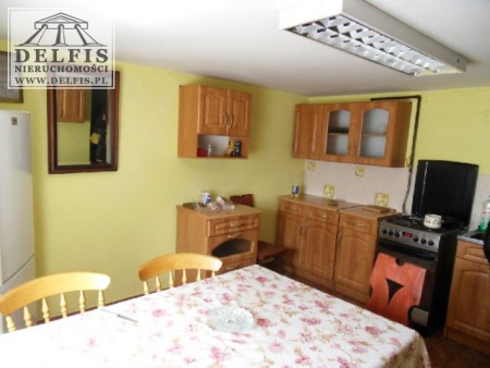 Dom piętrowy, w trakcie przystosowywania na cele agroturystyki- pozostały do wykonania drobne prace wykończeniowe. Przestrzeń dzienna zajmuje znaczną częśc parteru, salon wysoki na 2 kondygnacje otoczony jest na piętrze antresolą. Z salonu jest wejście do częściowo otwartej kuchni oraz do gabinetu. Przygotowane jest miejce na łazienkę. Pokoje gościnne na parterze mają odrębne łazienki z prysznicami i wyjście bezpośrednio do ogrodu. 3 pokoje gościnne na piętrze mają wspólną łazienkę i wyjście na balkony.
